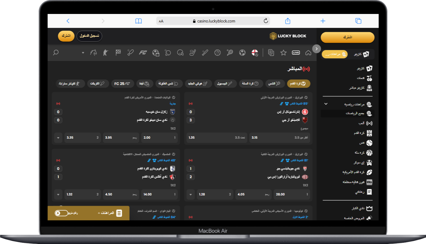 - 2.4 4. Lucky Block: منصة مراهنات رقمية عالمية بتغطية واسعة للرياضات الإلكترونية