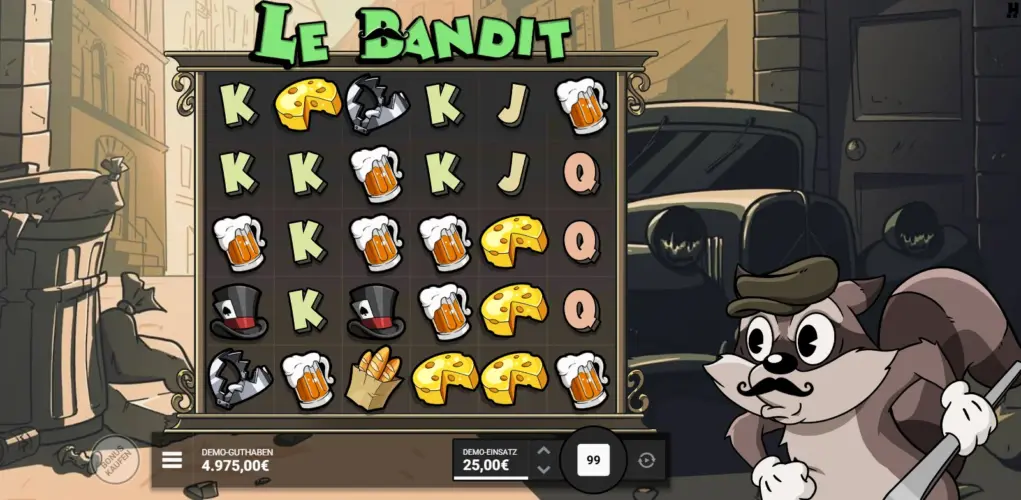 - Le Bandit Demo testen: Bevor Sie echtes Geld einsetzen, spielen Sie die Le Bandit Demo kostenlos. So lernen Sie die Spielmechanik, Symbolwerte und Features ohne finanzielles Risiko kennen. Dies ist ein entscheidender Vorteil gegenüber Live Casino Spielen, die Sie nur mit Echtgeld spielen können.