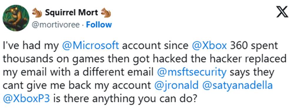 Die Story ist schnell erzählt und gerade deshalb so beunruhigend. Squirrel Mort berichtete auf X, wie Unbekannte Zugriff auf seinen Microsoft Account erlangten und innerhalb kurzer Zeit die zentralen Sicherheitsdaten änderten. Die hinterlegte E-Mail-Adresse wurde einfach ersetzt, die Passwörter zurückgesetzt und Schutzmechanismen angepasst. Der rechtmäßige Besitzer war von einem Moment auf den anderen ausgesperrt. Ein Login war für ihn ab diesem Zeitpunkt nicht mehr möglich.