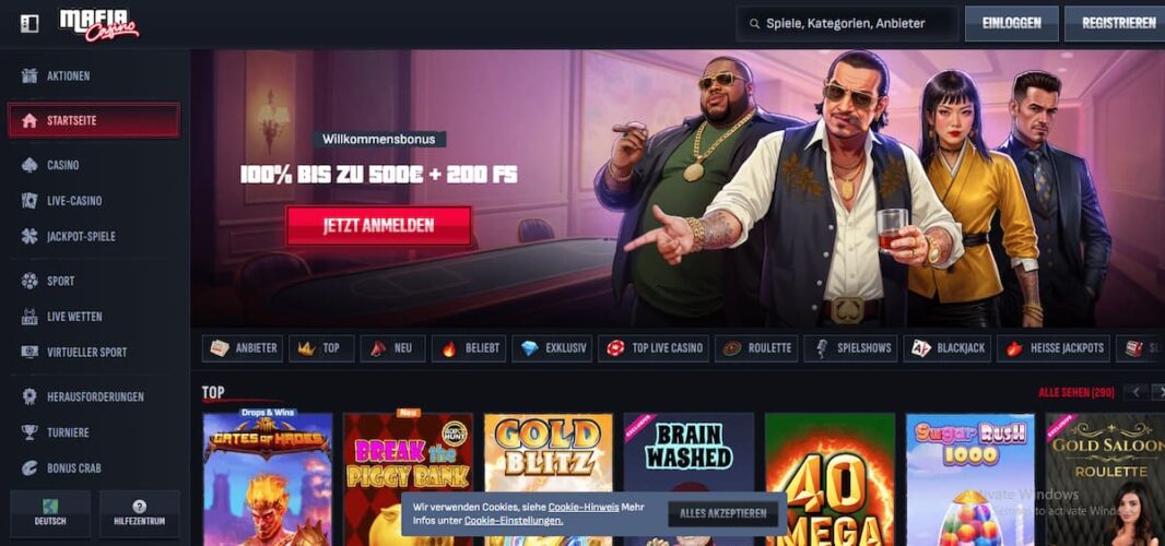 Als neuer Kunde bietet Ihnen das Mafia Casino einen 100% Willkommensbonus bis zu 500 € und 200 Freispiele an. Die Umsatzbedingungen werden von uns als fair und machbar eingestuft. Auch Bestandskunden können von einem umfangreichen Bonusprogramm profitieren und an vielen Aktionen und Promos in allen Kategorien teilnehmen.