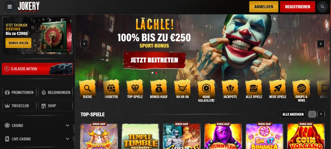 Das Spielportfolio kann im Test als vollständig beschrieben werden. Egal ob Sie Spielautomaten oder Casino-Klassiker bevorzugen, Sie werden fündig. Wer als Stammspieler im Jokery Casino Tickets sammelt, kann mit etwas Glück einen neuen Mercedes G-Klasse gewinnen. Das Jokery Willkommensangebot in Luxemburg erstreckt sich im Gesamtwert von 3.000 Euro über drei Einzahlungen. Los geht es für Sie mit einem 100% bis 1.500 Euro Neukundenbonus und 100 Freispielen.