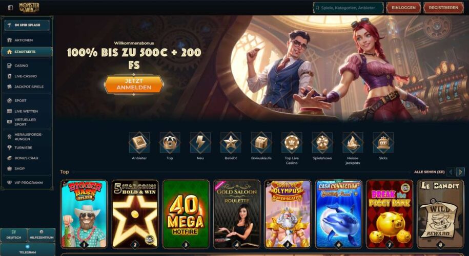 Das Monsterwin Casino ist das beste Online Casino in Österreich. Mit mehr als 11.000 Spielen ist das Portfolio überragend. Zum Angebot gehören sogar Novoline-Slots (Novomatic) wie Book of Ra Deluxe, Lord of the Ocean und Sizzling Hot Deluxe. Dazu gibt es Games von mehr als 100 internationalen Herstellern wie Pragmatic Play, Play‘n GO und Gamomat.
