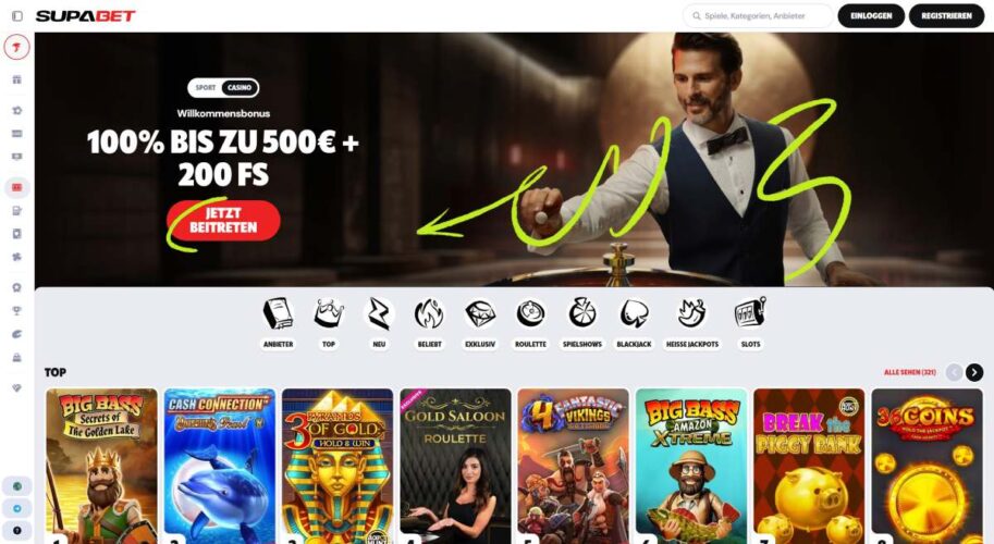 Sie können mit Bitcoin und Euro einzahlen. Es gibt ein lukratives VIP-Programm und auch die Auswahl an regelmäßig verfügbaren Slots-Turnieren ist exzellent. Das Supabet Casino ist für anspruchsvolle Spieler eine hervorragende Wahl.