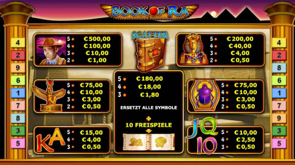 Bei Online Spielautomaten werden die Auszahlungsquoten als RTP (Return to Player) bezeichnet. Ältere Novoline Slots haben oft einen etwas niedrigeren RTP. Book of Ra hat beispielsweise nur einen RTP von 92,13 %. Das bedeutet, dass langfristig von 100 € Einsatz etwa 92 € wieder an die Spieler ausgezahlt werden. Book of Ra Deluxe hingegen hat einen RTP, der mit 95,1 % ganze 3 % höher ist als das Original. Das macht sich langfristig bemerkbar.
