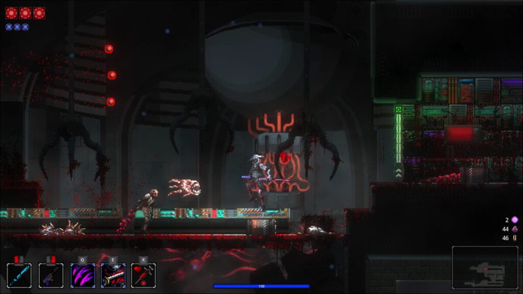 Für ein Spiel, das stark im Horrorbereich angesiedelt ist, ist Katanaut nicht besonders gruselig. Es handelt sich eher um ekelerregenden Horror als um „Buh!”-Horror. Alles sieht einfach nur klebrig aus und die massiven Blutspritzer sowie die verschiedenen grausigen Animationen tragen wirklich zur Gesamtatmosphäre bei.