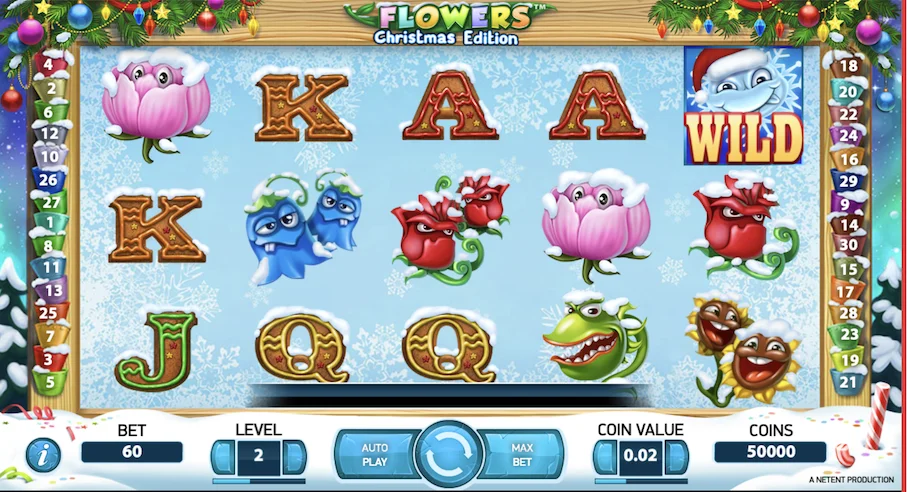 Flowers Christmas Edition rakentuu klassiselle 5×3-ruksi-ruudukolle ja tarjoaa useamman voittolinjan, mikä tekee pelistä helposti lähestyttävän myös aloitteleville pelaajille. Pelaajan on helppo ymmärtää, miten voitot muodostuvat, ja peli sopii hyvin niille, jotka eivät kaipaa monimutkaisia bonustoimintoja tai high-risk-rakenteita.