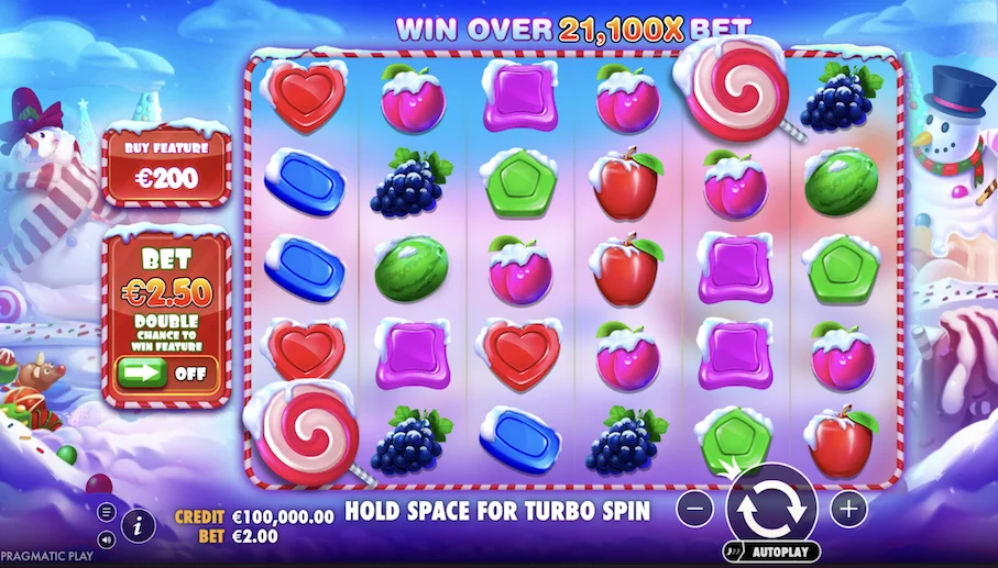 Sweet Bonanza Xmas noudattaa alkuperäisen pelin perusrakennetta, mutta tuo siihen talvisen ilmeen ja hieman erilaisen äänimaailman. 6×5-ruudukko ja “Pay Anywhere” -mekaniikka tekevät pelistä modernin ja miellyttävän nopean pelattavan. Voittoja ei muodosteta voittolinjoilla, vaan riittää, että tarpeeksi samanlaisia symboleita osuu ruudukkoon mihin tahansa.