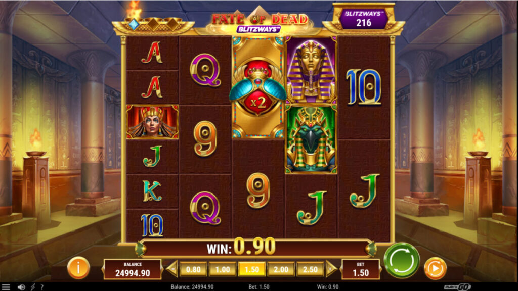 Plus une résurrection qu’une nouveauté, Fate of Dead Blitzways s’inscrit dans la lignée des titres antiques de Play’n GO, comme Legacy of Dead et Scroll of Dead.