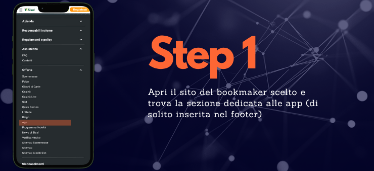 - Apri il sito del bookmaker scelto e trova la sezione dedicata alle app