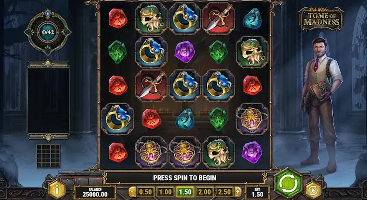 Tome of Madnessには、フリースピン機能、マルチプライヤー、オートプレイ機能が搭載されています。