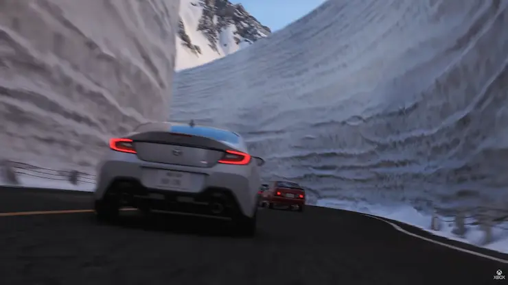 今回開発チームが特に力を入れているのが日本の四季を感じさせるロケーションの数々だ。特に巨大な雪の壁がそびえ立つ富山県の大谷を今回チョイスした事はユーザーからは高い注目を集めており、海外ユーザーがこの光景に驚く中で「日本には実際こういう風景は存在するから」と特に驚くでもない日本のドライバーの声が紹介されていたりもする。なお同様の光景は、山形県からアクセス出来る蔵王山の自動車向け登山道でも冬場よく見られるものとなっているし、何なら北国の雪道ではもっと激しい道路事情にお目にかかれる。降雪量が世界有数の土地に人々が生活しているという点は、伊達ではないのだ。