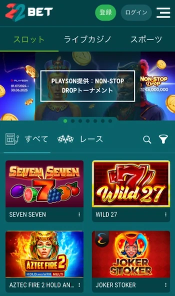 - 2.7 オンラインカジノ アプリ 日本人気No.7:22betカジノ