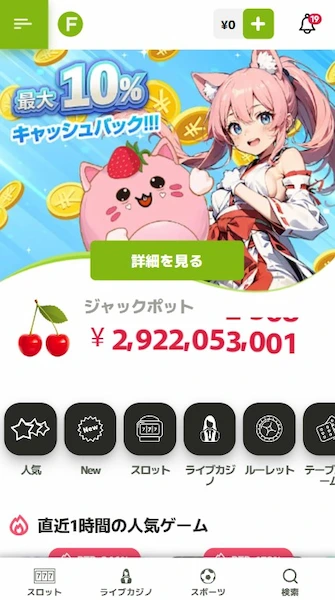 - 2.5 稼げるカジノアプリ 人気No.5:フレッシュカジノ