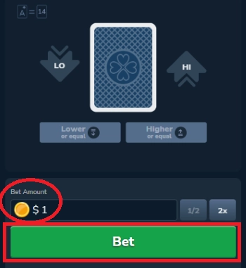プレイしたいハイアンドローのゲームを開き、ベット額を決めます。