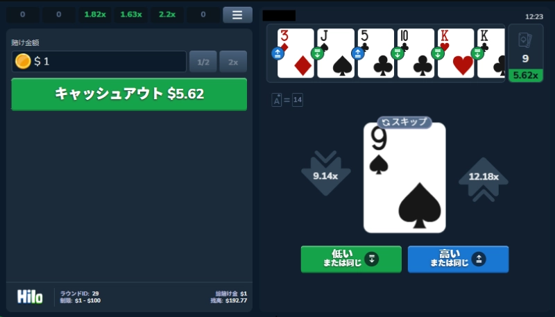 5.Spribe社のHILO(ハイアンドロー)