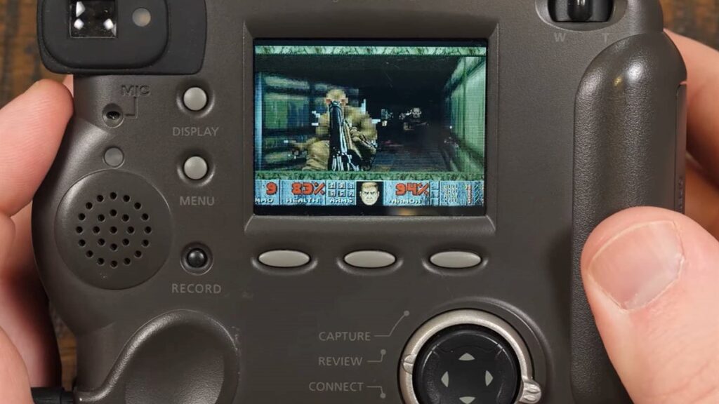 Modelos de câmeras digitais dos anos 1990 e início dos anos 2000, com processador embutido, tela e armazenamento, foram modificados para rodar Doom.
