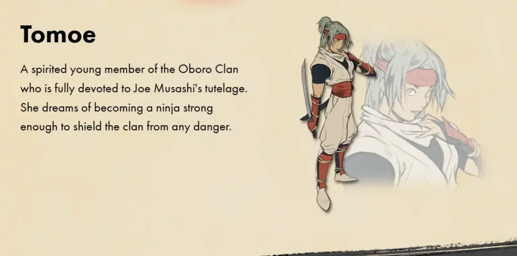 Além da esposa de Musashi, Naoko (que já aparecia nos games antigos), o jogo ainda traz como personagens importantes a sua discípula, Tomoe, e o cachorro gigante Yamato.